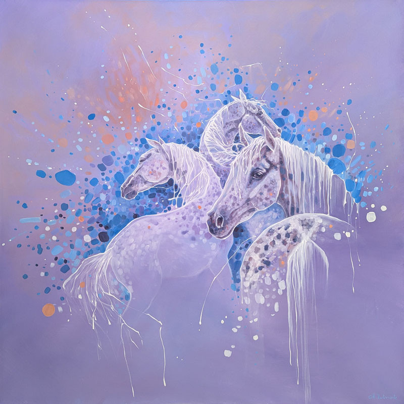 Keywords: Horses, dancing horses, abstract horses, Arabian horses, Arab horse, dappled horses, white horses, grey horses, stallions, horse abstract, equine abstract, equine art, Gill Bustamante, expressive paintings, contemporary horse art, unique horse paintings, purple, nature inspired, contemporary art, spiritual art, semi-abstract landscape, otherworldly, ethereal, nature, ethereal paintings, vibrantly coloured landscapes, magical,