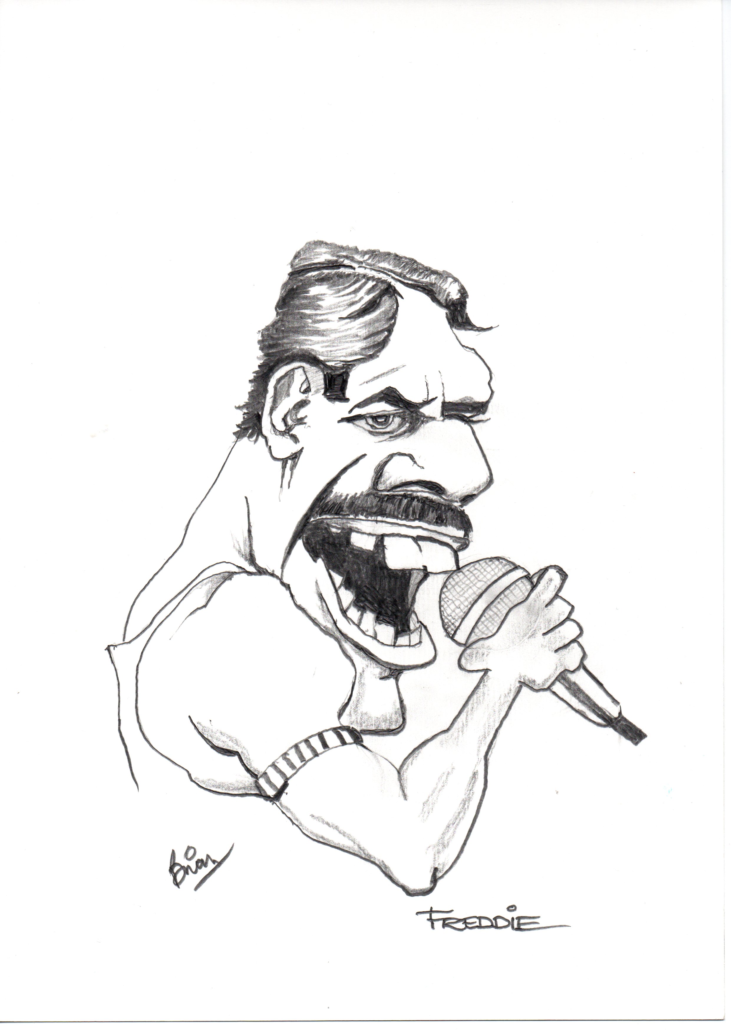 Description: An A4 original caricature of Freddie Mercury with certificate of authenticity