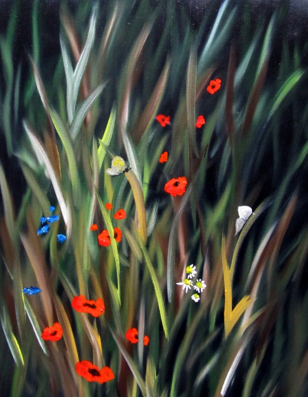 Keywords: Poppies,grasses,butterflies,oils,atmospheric,diane jennings,original art,canvas