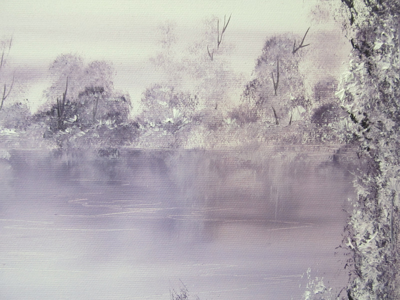 Keywords: Snow,trees,water,snow scene.winter scene,oil painting,diane jennings,original art,