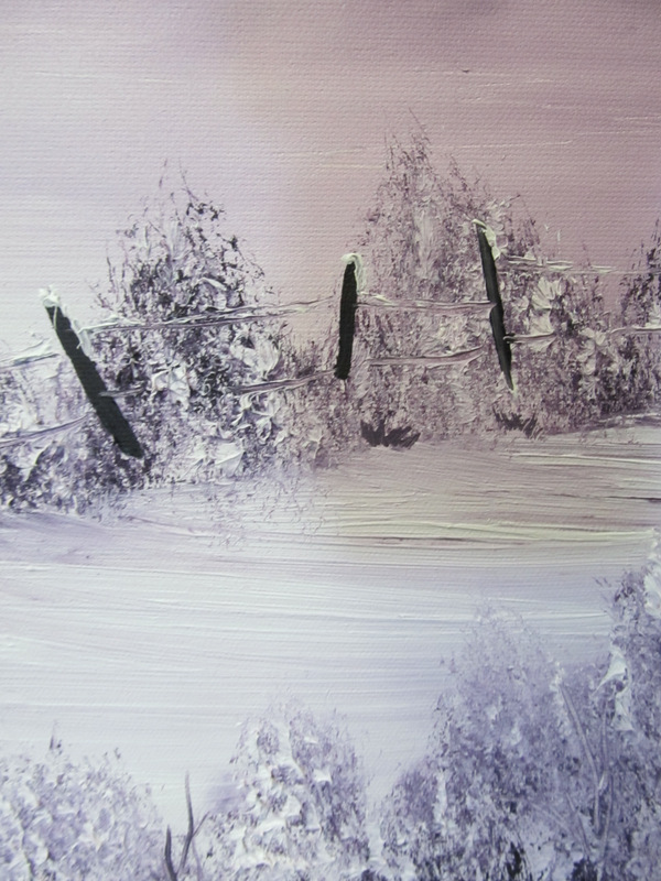 A tranquil scene of a snowy path in winter! The dusky lilac colour Ive used makes the painting feel really cold..Lots of texture on there with thick paint used to create depth.