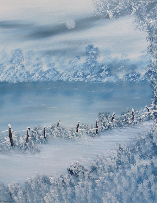 Keywords: Serenity,snow,trees,original oil painting,Diane Jennings,trees,snowy path,