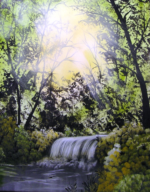 Keywords: Waterfall.woods, sunlight,water,contemporary art,diane jennings,