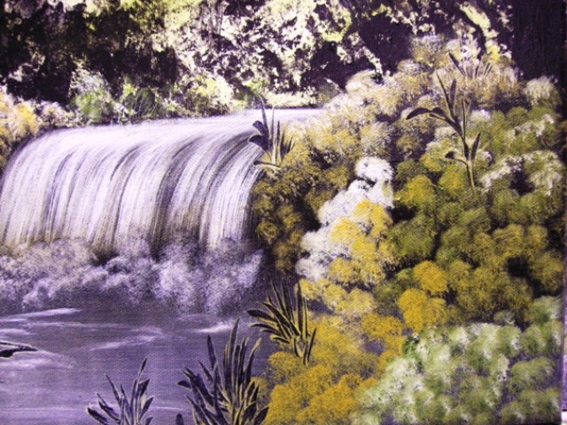 This acrylic and oil painting is a picture based around the falls at Devils Bridge.