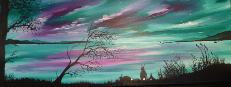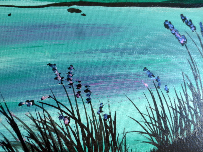 A combination of unusual colours that work really well together! The dark turquoise green and purple make this painting a little different..