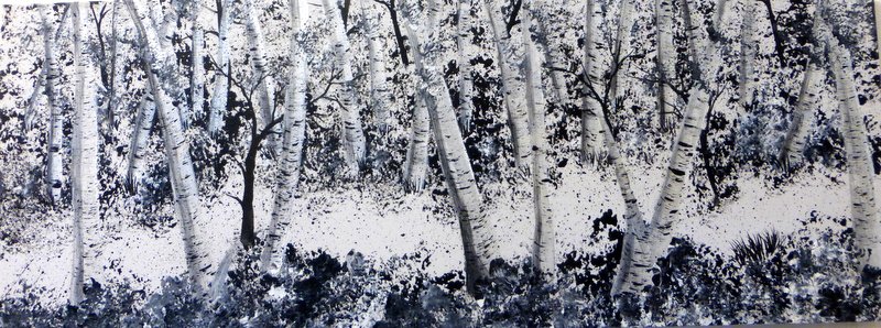 Keywords: Birches,original art,Diane Jennings,acrylic painting,monochrome,texture,black,white, grey,