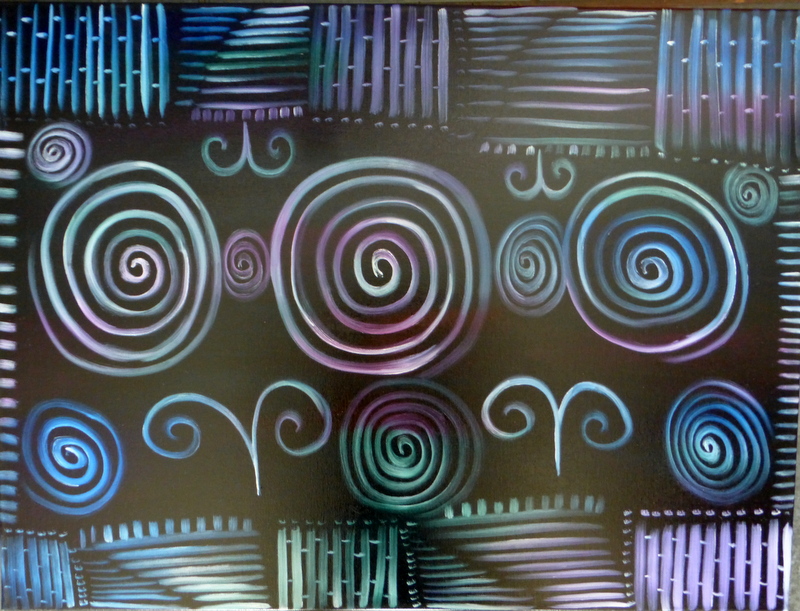 Keywords: Original art,Diane Jennings,oil painting,colour,pattern,green,purple,pink,aztec,