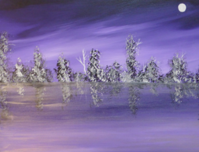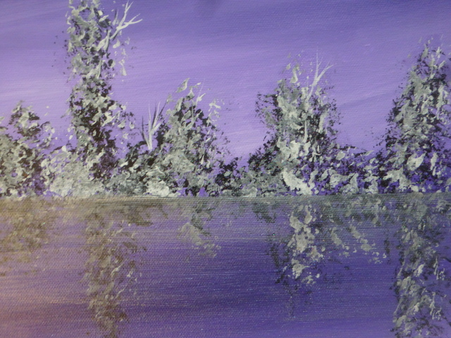 Keywords: Original acrylic painting,Diane Jennings,snow,trees,purple,white,silver