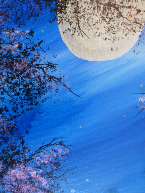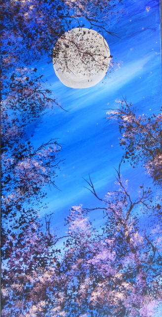 Keywords: Original acrylic painting,Diane Jennings,moon,sky,tree,blue,black,silver