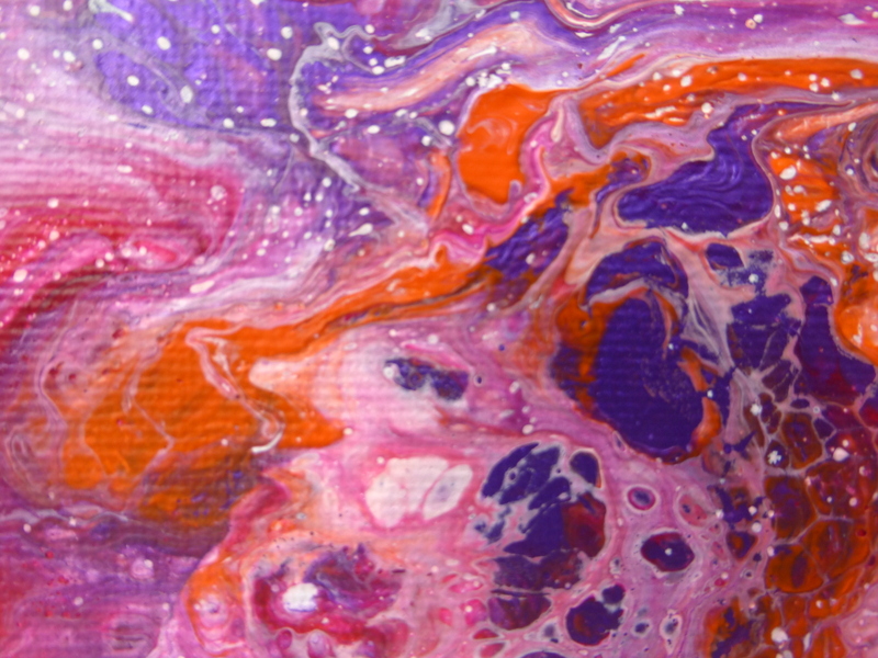 Description: I love abstract art,I love the fact that you can see something different every time you look at it, and the fact you can hang it 4 different ways if you wish to do so.. This painting has been created using high quality acrylic paints on a 30cm x 40cm canvas.. I have used some different techniques in this painting using some chemical reaction that have created some interesting results. The photos really do not do this painting justice. The purple paint is metallic and it really jumps out of the canvas,it has moved all around the canvas and appears in the bubble effect too..other colours include a vibrant fuchsia pink and hot orange,
