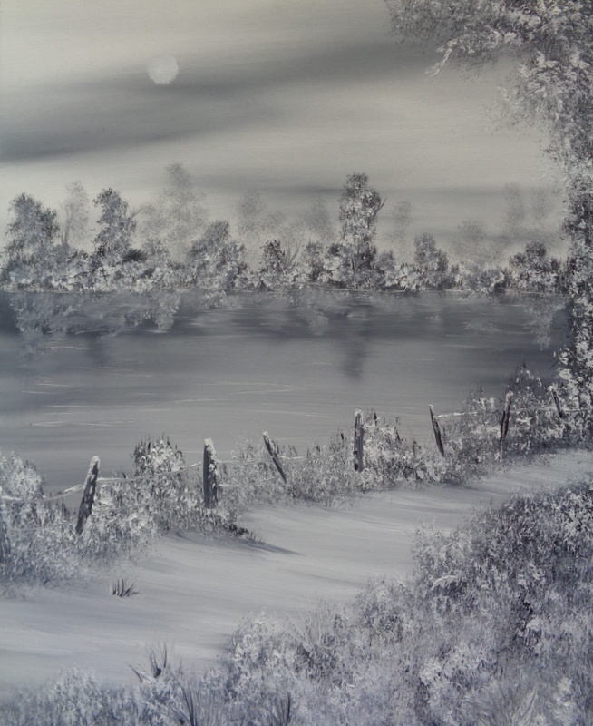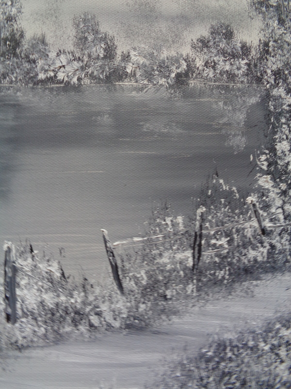 Serenity in Grey is based on happy memories spent as a child walking along a snowy path with my Dad in winter...there is nothing like being the first to step onto fresh snowfall. There is lots of lovely texture in the painting...