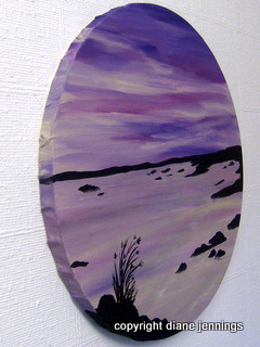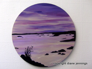 Keywords: Seascape,sunset,water,beach,canvas, diane jennings, affordable british art,round canvas,