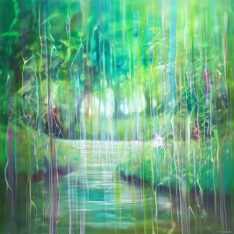 Keywords: Emanation, semi-abstract, contemporary landscape oil painting, white egret, river bank, green trees, pink wildflowers, a magical aspect, river Medway, Tunbridge Wells, white egrets, green willows, reeds, flowers, green oil paintings, painting of rivers, riverbank paintings, white egret by river, June in the countryside, British wildlife paintings, painting of birds, paintings of rivers, magical paintings, fairy tale paintings, Gill Bustamante paintings, Gill Bustamante artist, gillbustamante.com, large oil paintings, UK artist, British female artists, contemporary British landscapes, Sussex artist, unique oil paintings, home is where the art is, semi-abstract landscape paintings, memory impressionism, art nouveau style landscapes, big landscape paintings for sale, paintings for sale in Sussex, magical paintings, uplifting paintings, colourful, vibrant paintings