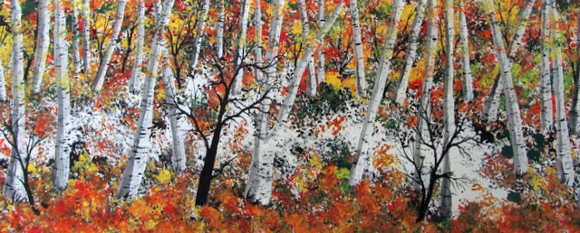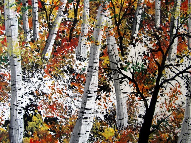Keywords: Autumn,original art,diane jennings,acrylic ,forest,leaves,birch trees,