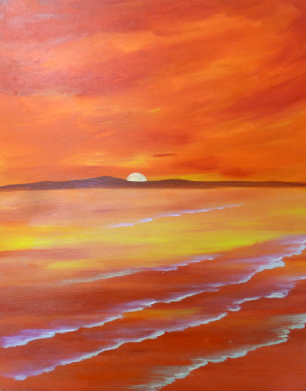 Keywords: Sunset,water,seascape, original painting,Diane Jennings,orange,metallic,waves,