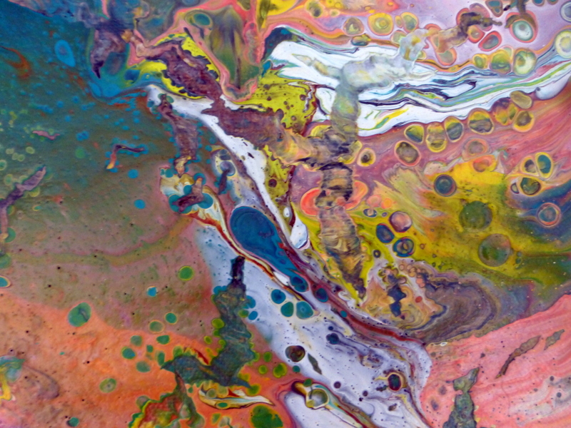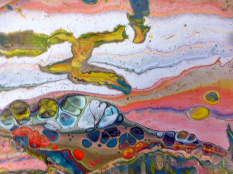 ''Bizarre'' is very colourful, with lots going on in there! Lots of 'cells' of colour abound-- I have included 2 close up details..