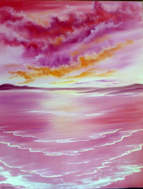 Keywords: Original oil painting,Diane Jennings,seascape,dawn,oils,waves,sky,pink,orange,red