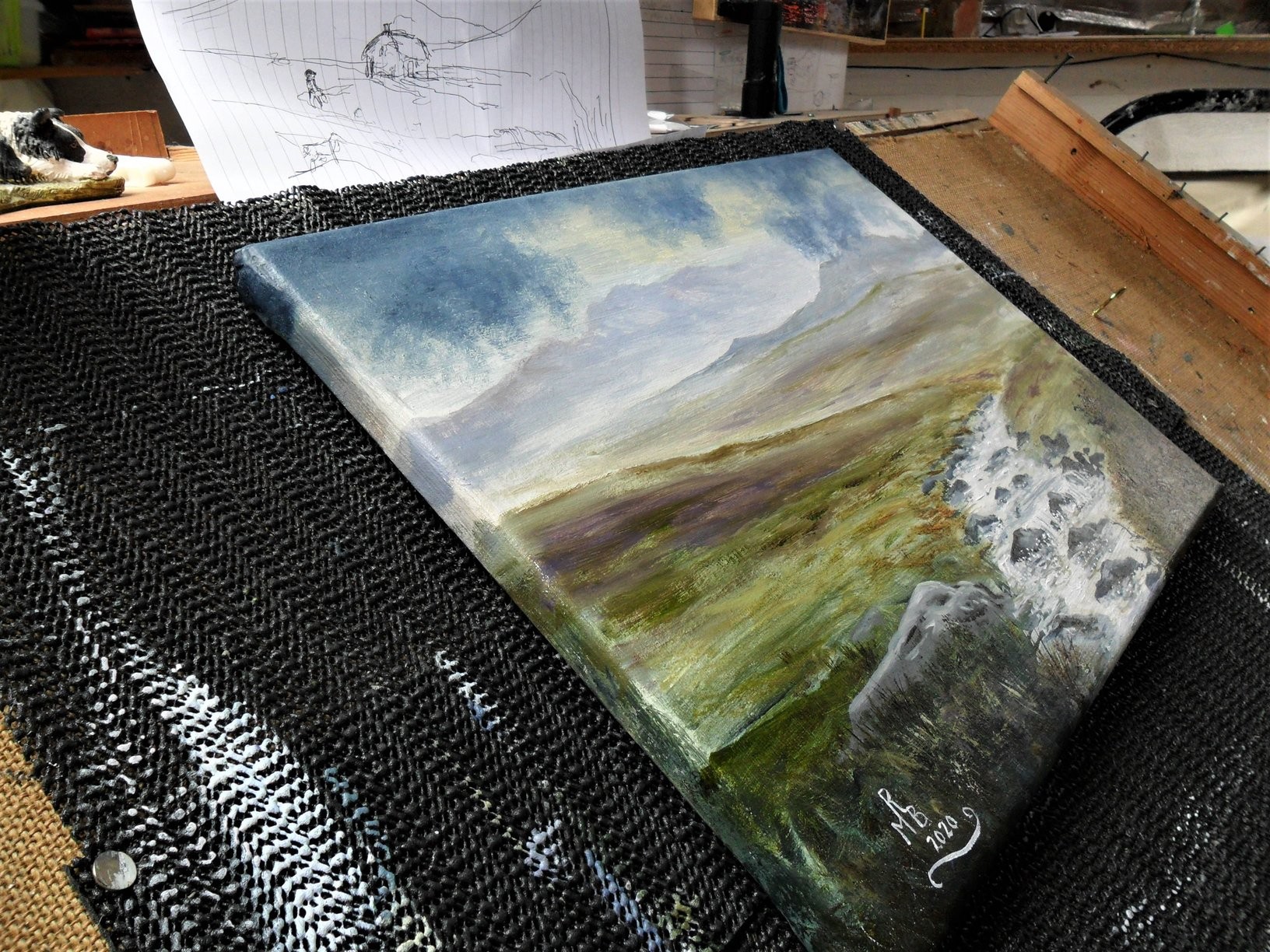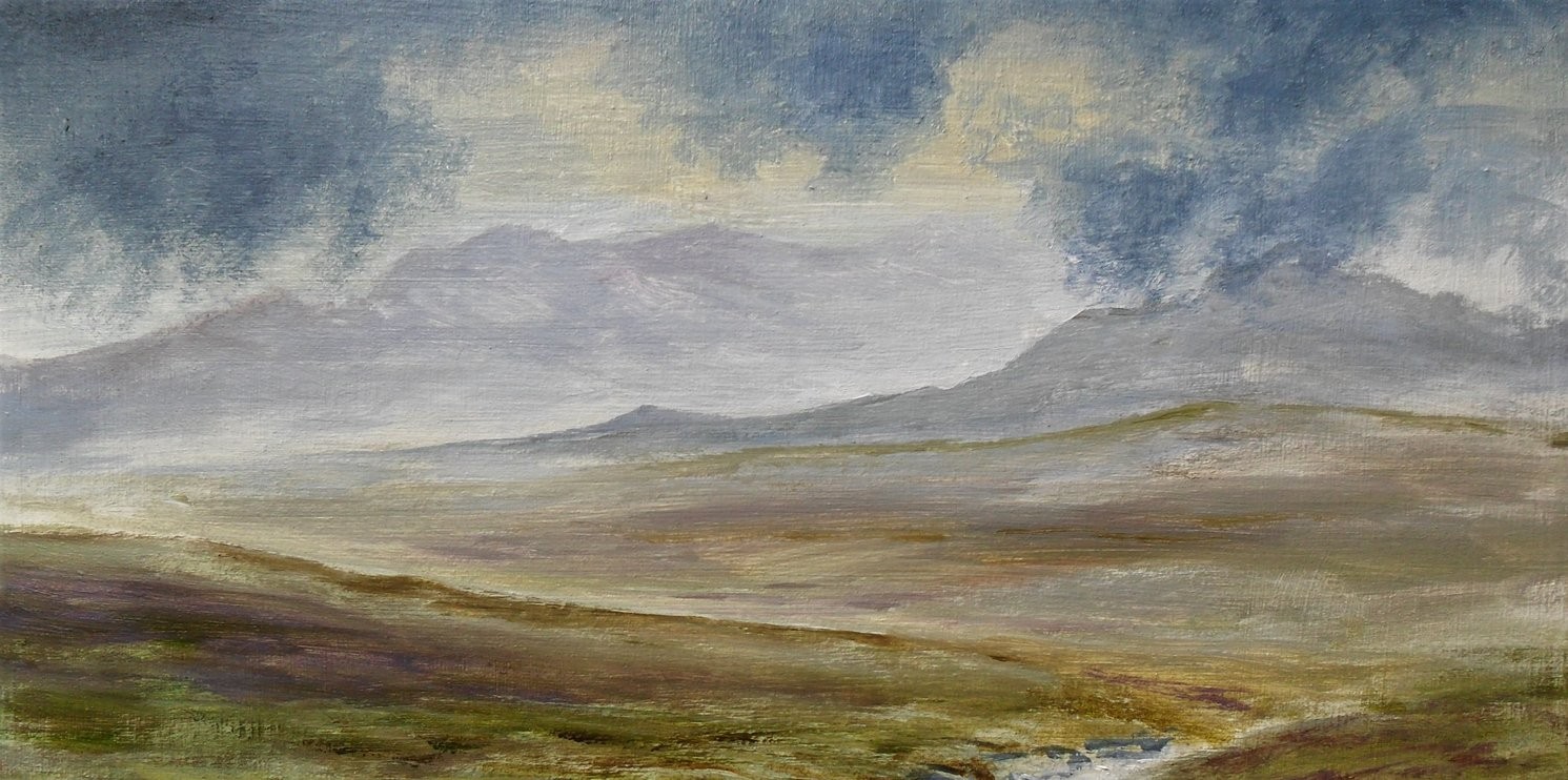 This is the type of place I love walking in...Wild open moorland, It always feels like there is something mysterious about such places, especially on a dull and dark day. I was going to add more to this little painting, as you can see by the sketch above, but I liked it just as it was in the end...simple.