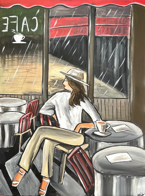 Keywords: Cafe, figurative, expressionism, city scenes, cafe scene, women waiting,