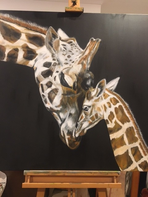 This studio painting was yet another delight to do. This captures a touching and tranquil moment between the beautiful, elegant and graceful giraffe and her calf. A reminder to cherish the ones we hold dear to ourselves.