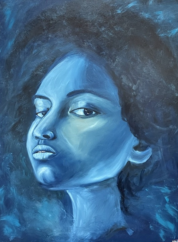 Keywords: Portrait, African portrait, black female portrait, blue portrait, contemporary portrait.