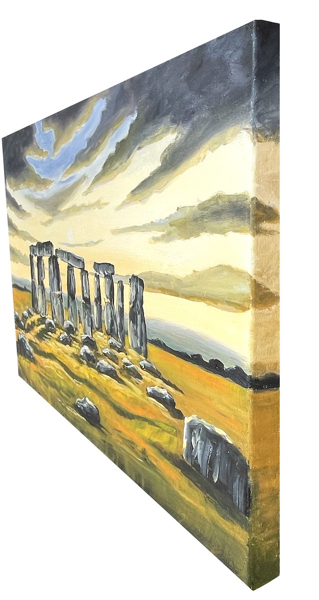 In a mesmerising symphony of ancient whispers and ethereal hues, the beauty of the Stonehenge painting unfolds like a portal to a bygone era. Against a canvas kissed by the soft glow of twilight, the enigmatic stones stand as silent sentinels, their weathered surfaces bearing witness to the passage of millennia.