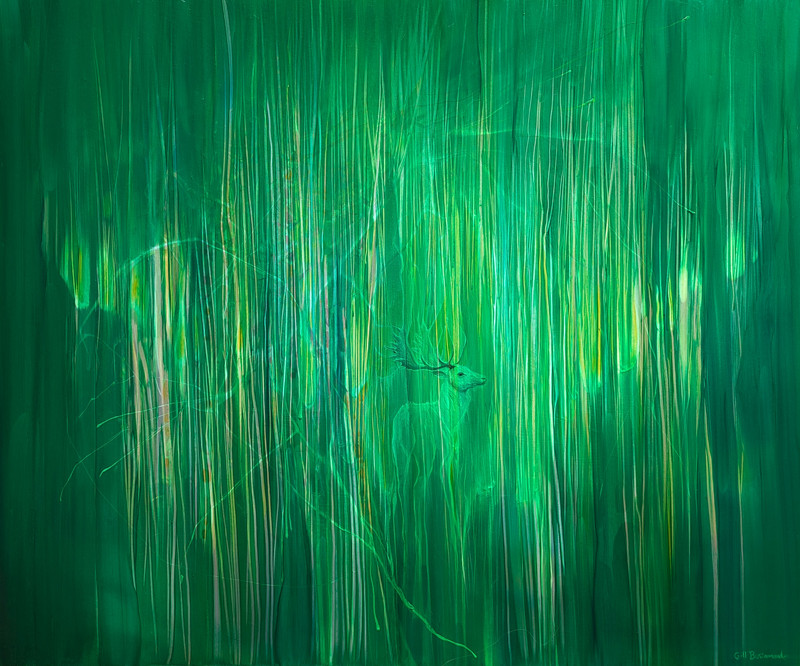 Keywords: Green glade, green forest abstract, stag in clearing, green wood, green abstract, green painting, emerald green forest, magical realism, abstract landscape, nature, pagan landscape, fairy tale, contemporary British art, spiritual art, semi-abstract landscape painting, English contemporary artist, stunning abstract painting, realism vs abstract, , ethereal-paintings, magical-landscape-paintings, semi abstract art nouveau, art nouveau style landscape, stunning abstract painting, realism vs abstract, ethereal-paintings, magical-landscape-paintings, semi abstract art nouveau, art nouveau style landscape.