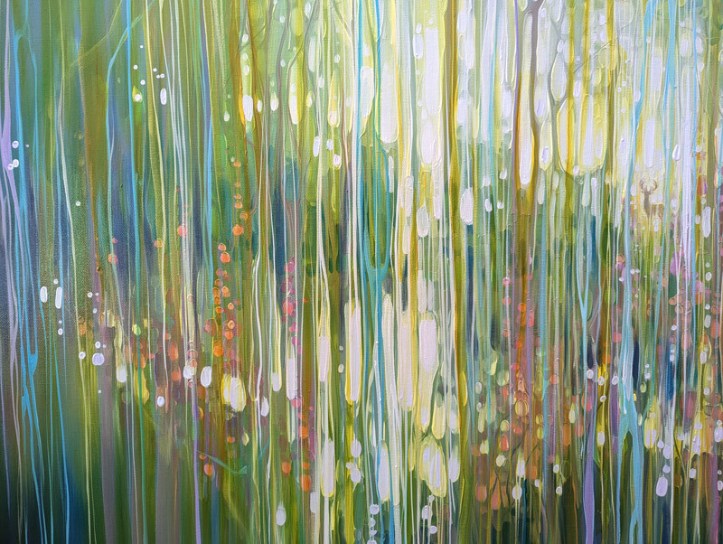 Keywords: Colourful abstract, stag, woodland, forest, trees, abstract landscape, woodland magical realism, ethereal paintings, fairy tale painting, unique paintings, Gill Bustamante paintings, expressive paintings, abstract landscape, nature, contemporary British art, spiritual art, semi-abstract landscape painting, realism vs abstract, magical realism, ethereal-paintings, magical-landscape-paintings, semi abstract art nouveau, art nouveau style landscape, colourful painting, wall art for sale, original oil paintings for sale, semi-abstract landscape paintings for sale, abstract wildlife paintings for sale, atmospheric landscape paintings for sale,