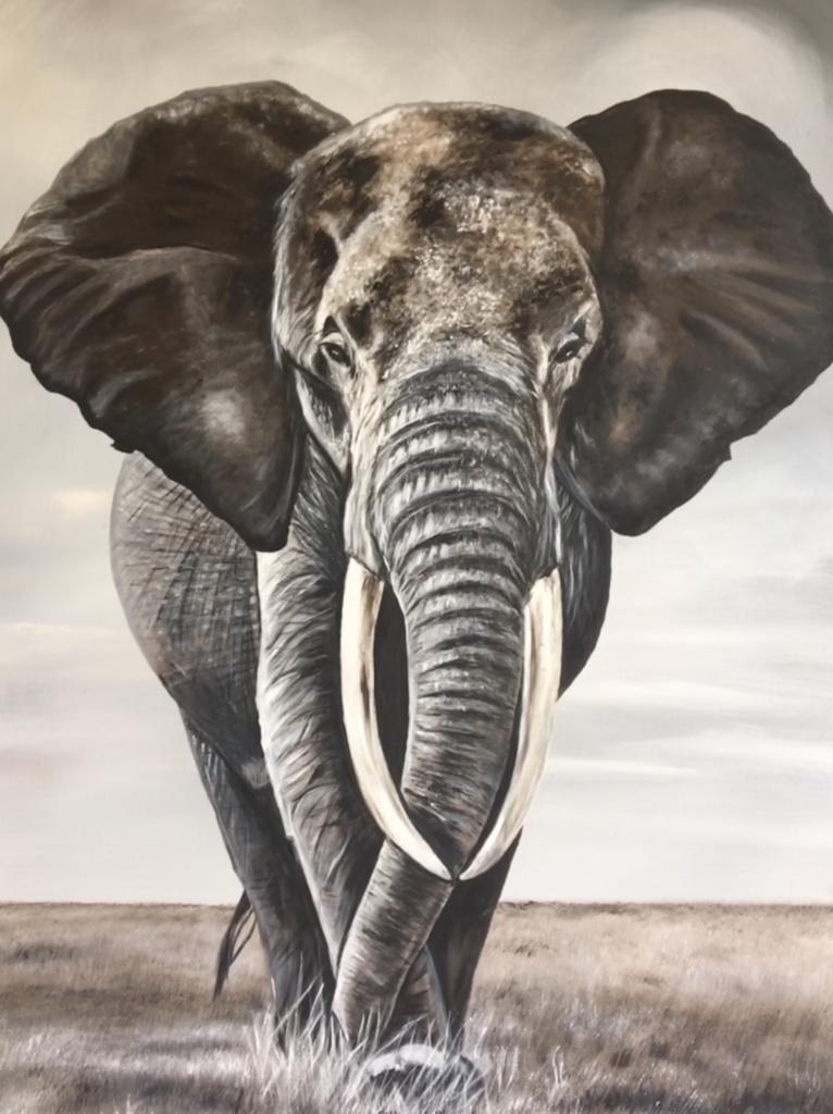 Beautiful painting of this gentle giant, loved doing this one as I am a big fan of elephants. I've tried to capture the movement and gracefulness and also the strength of this wonderful animal. This is oil on boxed canvas with sides painted so no need to frame.