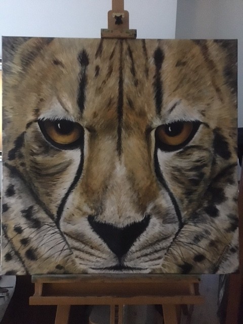 I wanted to capture the face of this beautiful cat, and the stunning colours. It took me time doing this piece as I repeatedly came back changing and adding more, it's one of those paintings that gave me great satisfaction in watching it grow. This is painted with oils on boxed canvas so no need to frame, ready to hang.