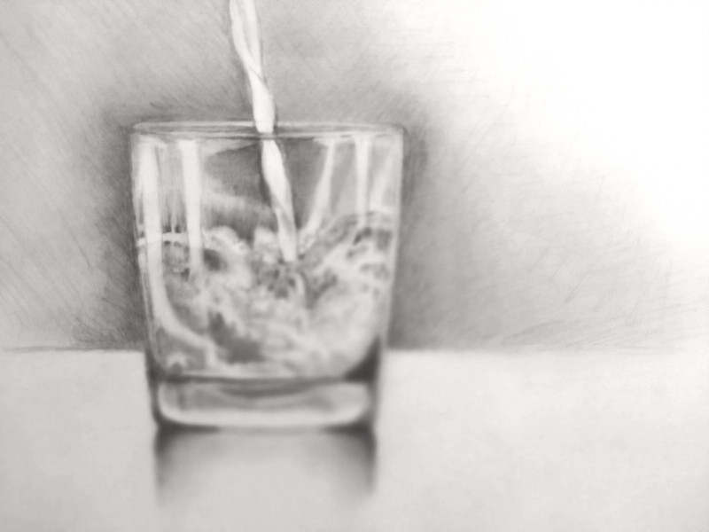It's Whisky O'clock. This is an original pencil drawing depicting some whisky being poured into a glass, by artist Rosemary Alexander.