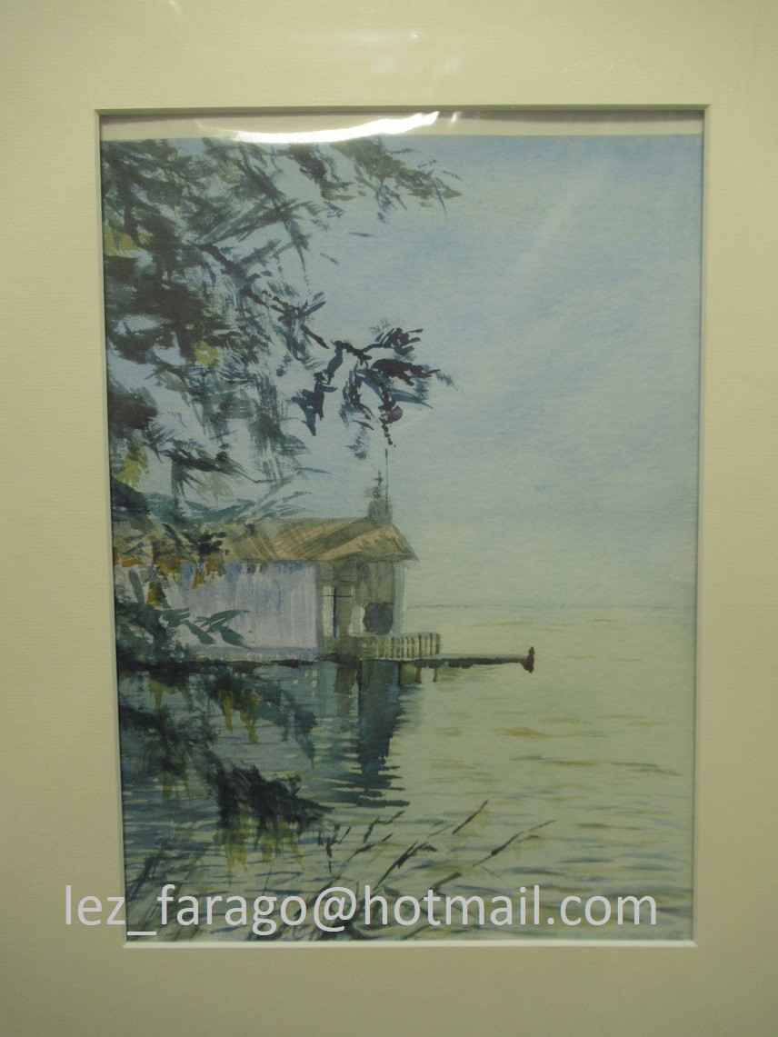 Original watercolour painting signed. Watercolour, 'Cabin on the lake', c. Nov' 2020, 16x12 in, on Hahnemeule 200lb paper. Unframed.