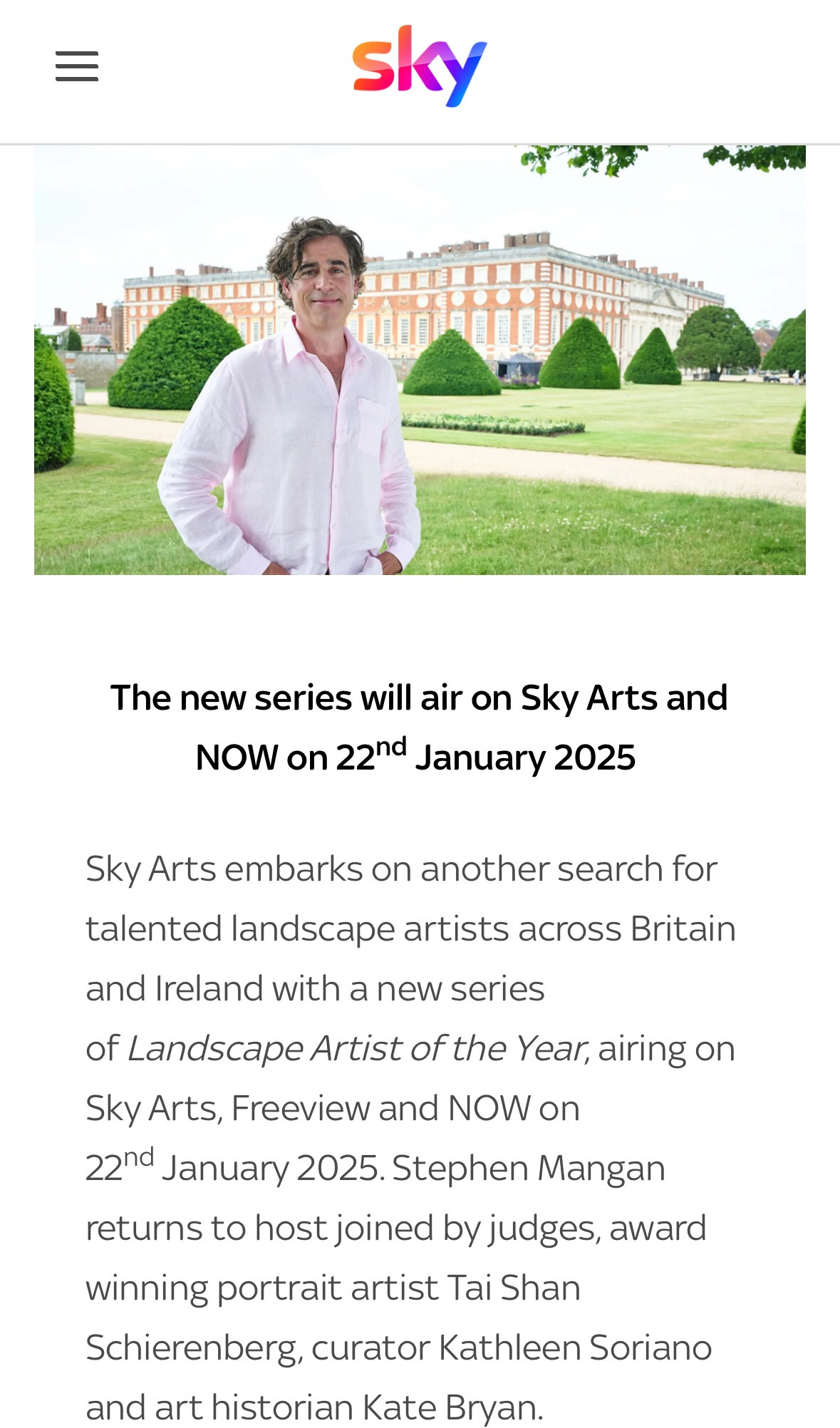 Young Adventurers of Machu Picchu #1 was a wild card entry earning a place in Heat 1, Series 10 of Sky Arts Landscape Artist of the Year 2025 filmed in Hampton Court Palace in which Privy Garden #5 was painted.