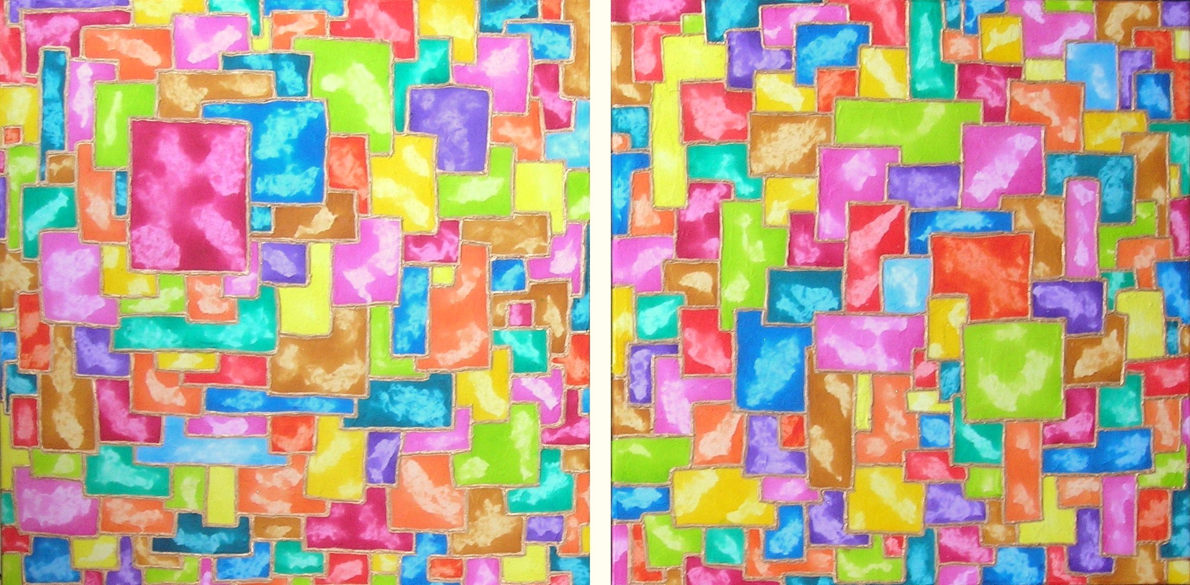 Keywords: Red, orange, yellow, green, gold, bright, vivid, colourful, colours, vibrant, abstract, modern, contemporary, texture, textured,painting, original, artwork, canvas, stretched, art, minimalist, squares, square, box, boxes, large, huge, structure, diptych