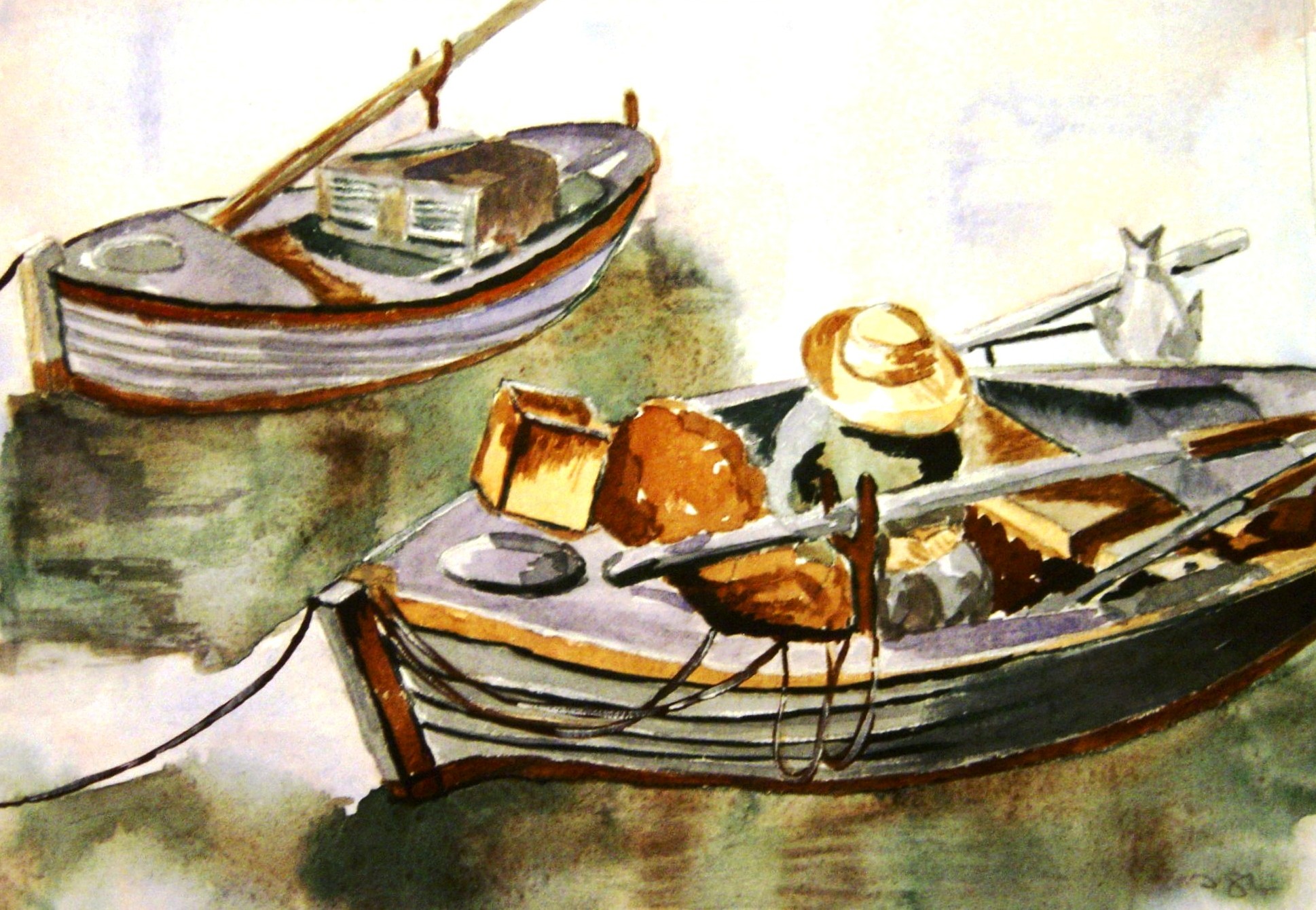 Keywords: Fish; Fisherman; Greece; Crete; Sea; Boat; Watercolour; Green; Mediterranean; Salt; Catch of the Day; Harbour