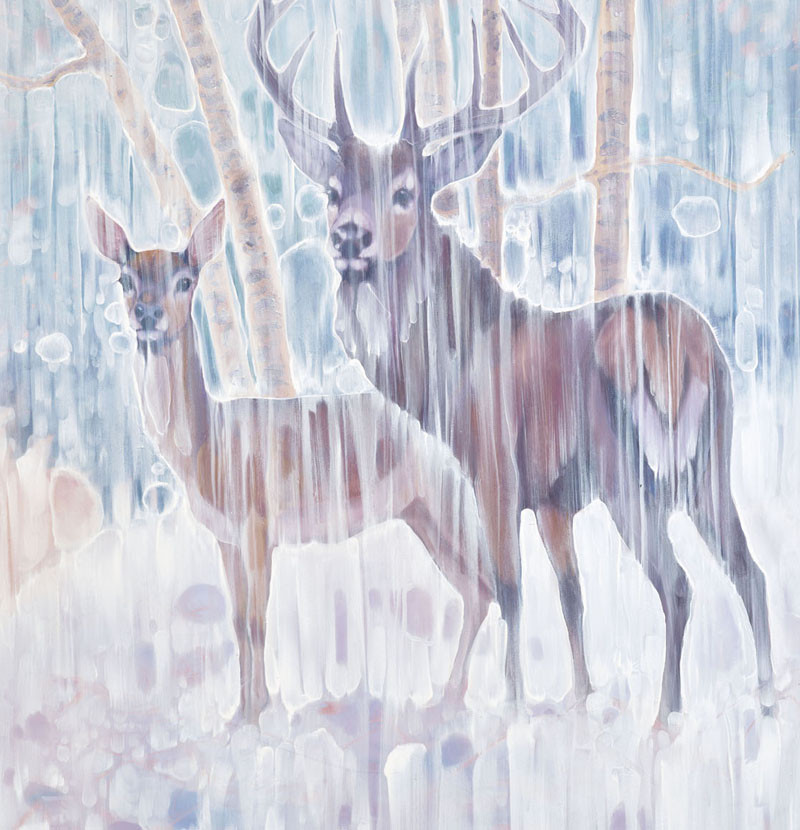 Keywords: Winter landscape, winter deer, snow, deer in snow, ethereal winter landscape, atmospheric landscape, wildlife, contemporary wildlife art, white painting, snowscape, snowy landscape, red deer, deer stag, stag in winter, Gill Bustamante paintings, Sussex artist, nature, wildlife paintings, nature-inspired-art, nature conservation, large oil paintings, British artists, independent artist, contemporary semi-abstract landscape paintings, oil paintings for sale, big landscape paintings for sale