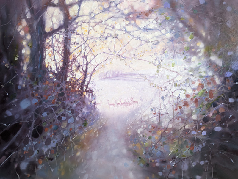 Keywords: Deer, winter landscape, magical winter, atmospheric landscape, dark woods, English winter, semi-abstract landscape paintings, semi abstract landscape and wildlife paintings, unique style, atmospheric landscapes, statement paintings, buy original art online, original painting, abstract landscapes, semi-abstract landscape, atmospheric landscapes, nature, contemporary British art, spiritual art, spiritual paintings, atmospheric abstraction, abstract nature, abstract wildlife, animals